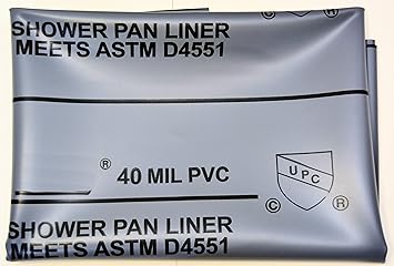 The pvc shower pan liner is a flexible waterproofing membrane that can be purchased at lowes or home depot.